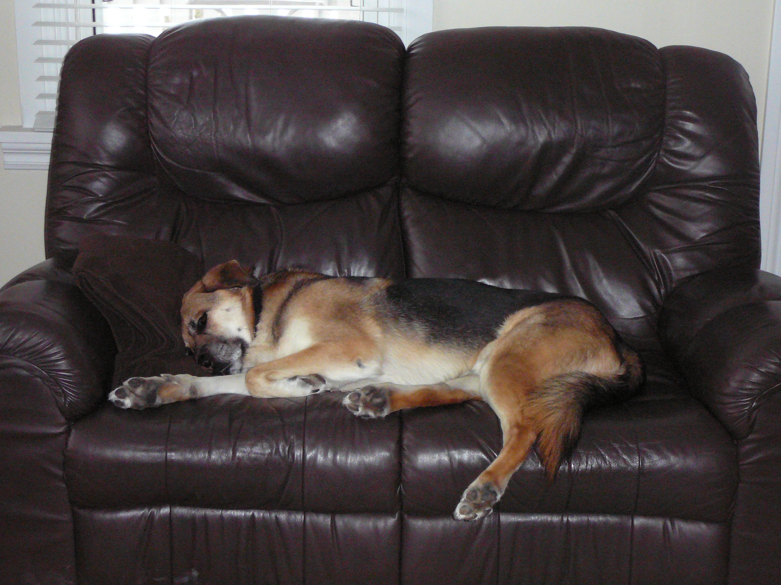 This is a common occurrence at our place too! Heck, I never have any room to sleep on our bed at night either because one dog is squished up right next to me, while the other one lays between us with their feet up in the air. It makes it rough when I have to get up to pee!