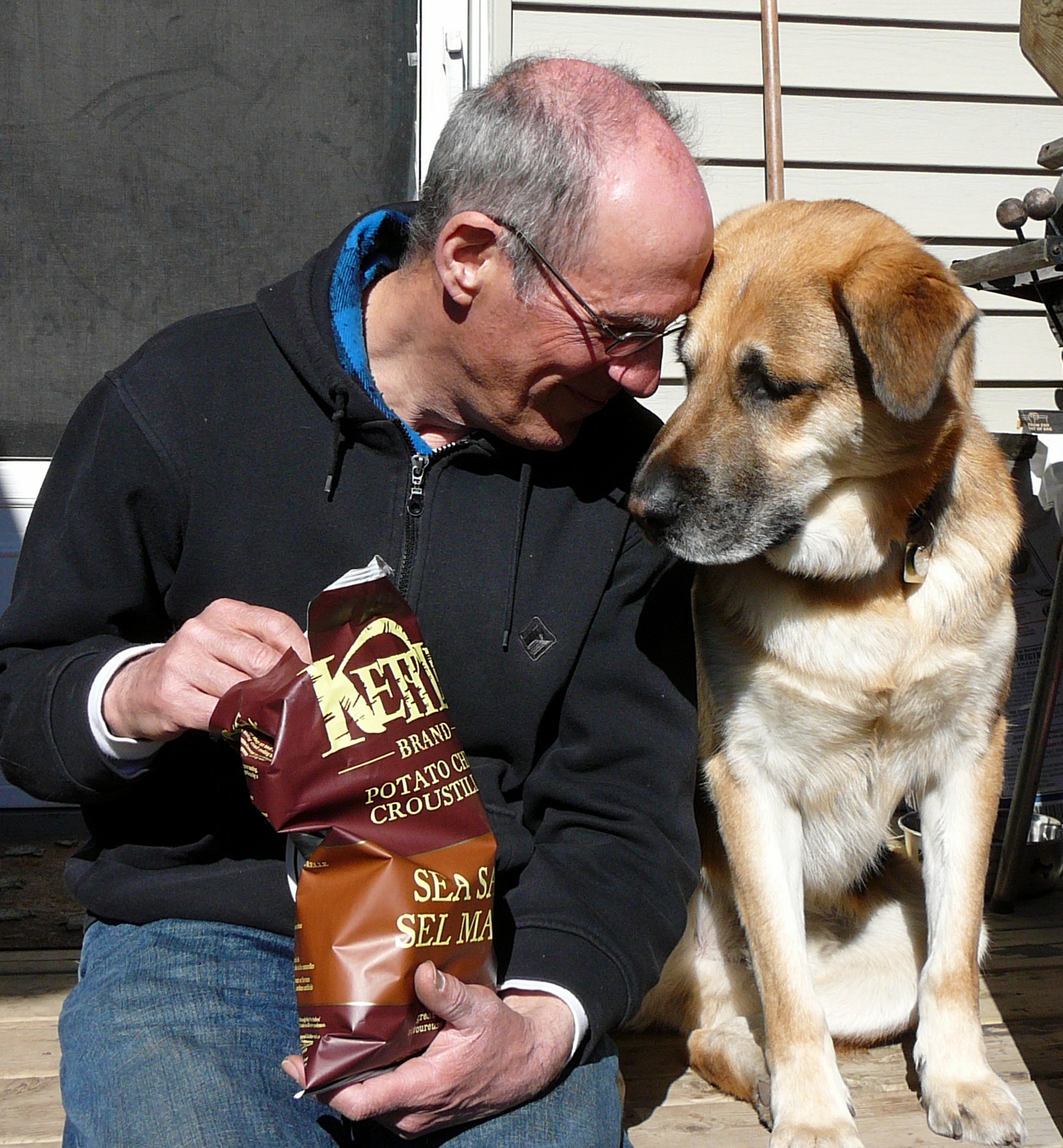 He very patiently waited to be offered one and, when he felt that perhaps I was not getting the message, a paw was gently placed on my arm and he initiated compelling eye contact! For the record, he only got a couple of chips, but he was very happy with that.