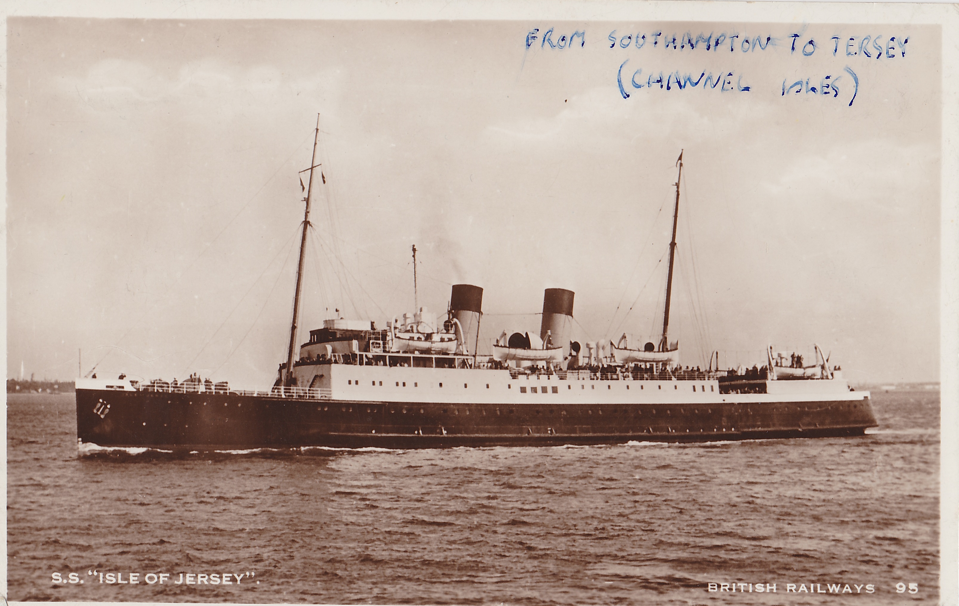 Having been told that we would be at sea for around 9 hours, this was going to be particularly exciting. As if it could not get any better, we had to go to Southampton to board which was two train rides away! We duly traveled by train to Southampton and boarded the British Railways steamer “Isle of Jersey”.