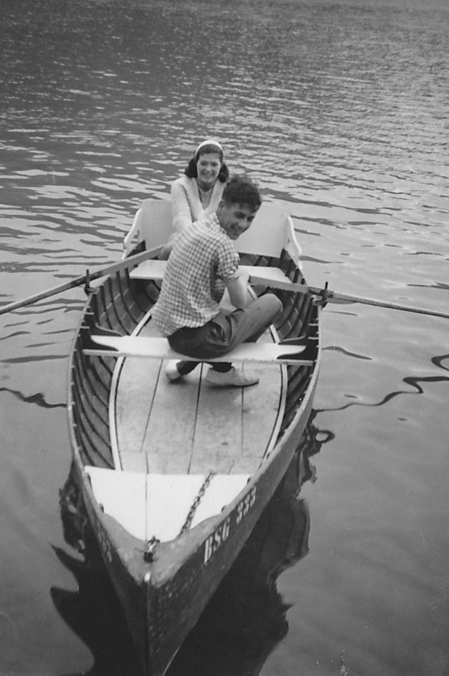 Hope you two knew how to swim. No life vests? Nice photo from way back then.