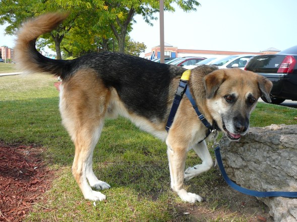 Hi Kate. Ray’s total obsession with food is a “double edged sword”! On the one hand, teaching him some behavioral skills to adapt to his new life was not a major problem, but also meant that to keep his weight under 80lbs would need some planning! Ray expects his 2 regular meals a day, and will get many other treats on a typical day as his adjustment to people and other dogs is an ongoing exercise. He now really likes meeting other dog people because they will invariably have treats on them… and he will find them! The end result is that we will never give him a complete McMuffin, or donut, or anything similar (and he does not complain as long as he gets a little something!).