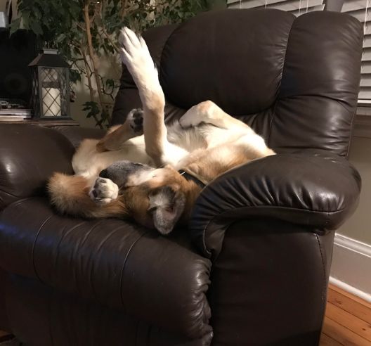 This picture is a testament to the great job you did rehabbing him. (Or he rehabbing you…whatever!) That is one relaxed dog!