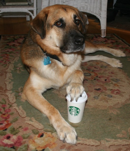 Ray is one handsome boy, no matter his breeds! And clearly he’s a Starbucks fan. That’s a great photo!