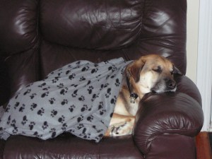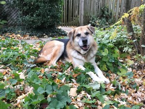 As I was getting comfortable so that I could give my dessert the undivided attention it so deserved, I decided to loosen the laces in my shoes. After that, the setting would have been as perfect as it could possibly get. Unfortunately, that setting was never to be. As I bent over to reach my shoes, holding my pumpkin pie topped with whipping cream away from Ray, I saw him leap towards it. I quickly moved my arm out of his reach however, the motion of the plate triggered movement from the pie which gracefully took off and landed rather ungracefully on the mat near our front door. My intuitive reaction was to follow its flight and I clearly remember the pie landing relatively unscathed and the whipping cream being splattered over the pie’s landing spot. I also remember seeing a large brown furry head seemingly vacuum up the pie which disappeared so fast that by the time I got to the “Leave it” command, there was nothing but traces of whipping cream on the mat!